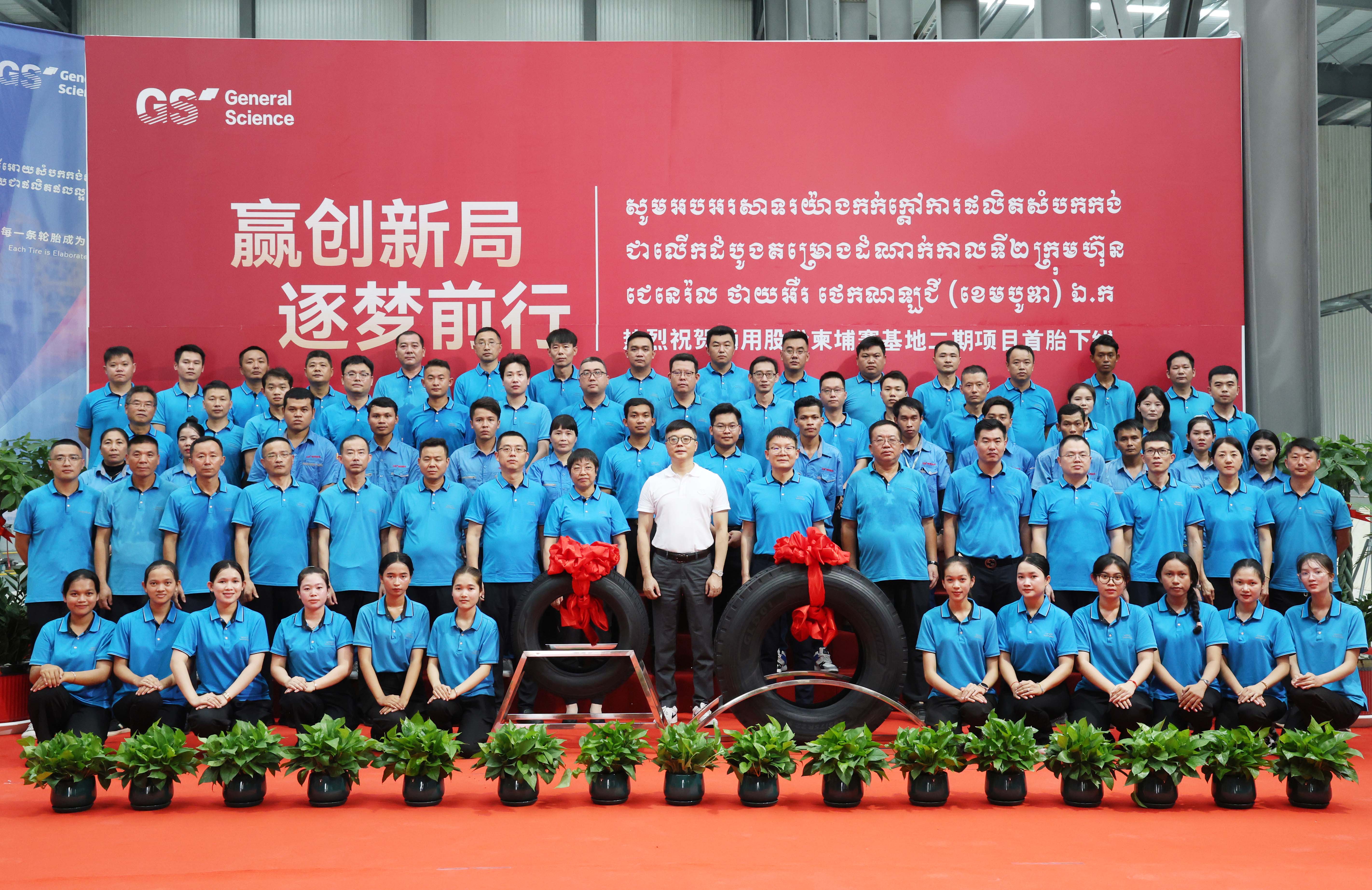 8月28日,通用股份柬埔寨基地二期项目首胎成功下线。通用股份董事长顾萃、海外公司总经理顾亚红等领导及柬埔寨全体员工共同见证通用股