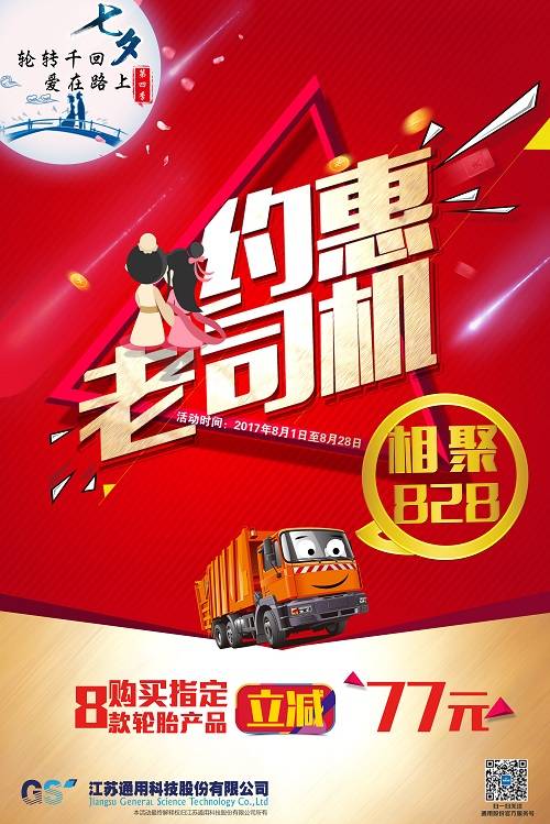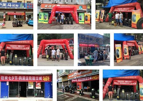 今年通用股份第四季七夕爱购月活动更是加大力度,从8月1日至8月28日,为期28天,约惠老司机、相聚828, 优惠普及风暴,席卷全国!凡购买通用股份“千里马、赤兔马、骐马、通运、喜达通”五大品牌指定8款轮胎产品,立减77元,不忘初心,践行以客户为中心的承诺,各地经销商们也因地制宜,贴心地为司机们准备了各种惊喜,路演所到之处,不仅汇聚了大规模的人流,还得到了老司机们的一致点赞。
