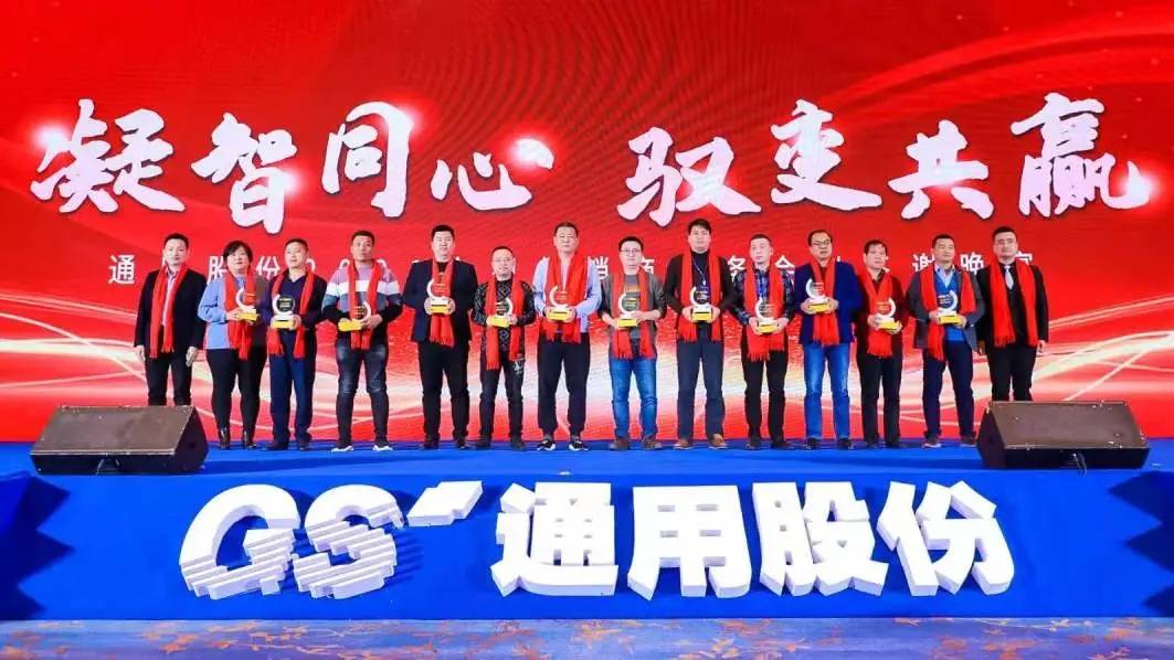 唯创新者强,唯进化者胜。本次会议隆重表彰了为通用股份发展贡献力量的经销商合作伙伴,晚宴现场颁发了2020年度潜力经销商奖、先进经销商奖、优秀经销商奖、杰出经销商奖等奖项。他们以高昂的斗志驰骋跨越,在商海的竞争中勇立潮头,乘风破浪,他们是通用股份亲密无间的合作伙伴,一座座奖杯记录了他们的荣誉和付出,会议现场气氛不断推向高潮!