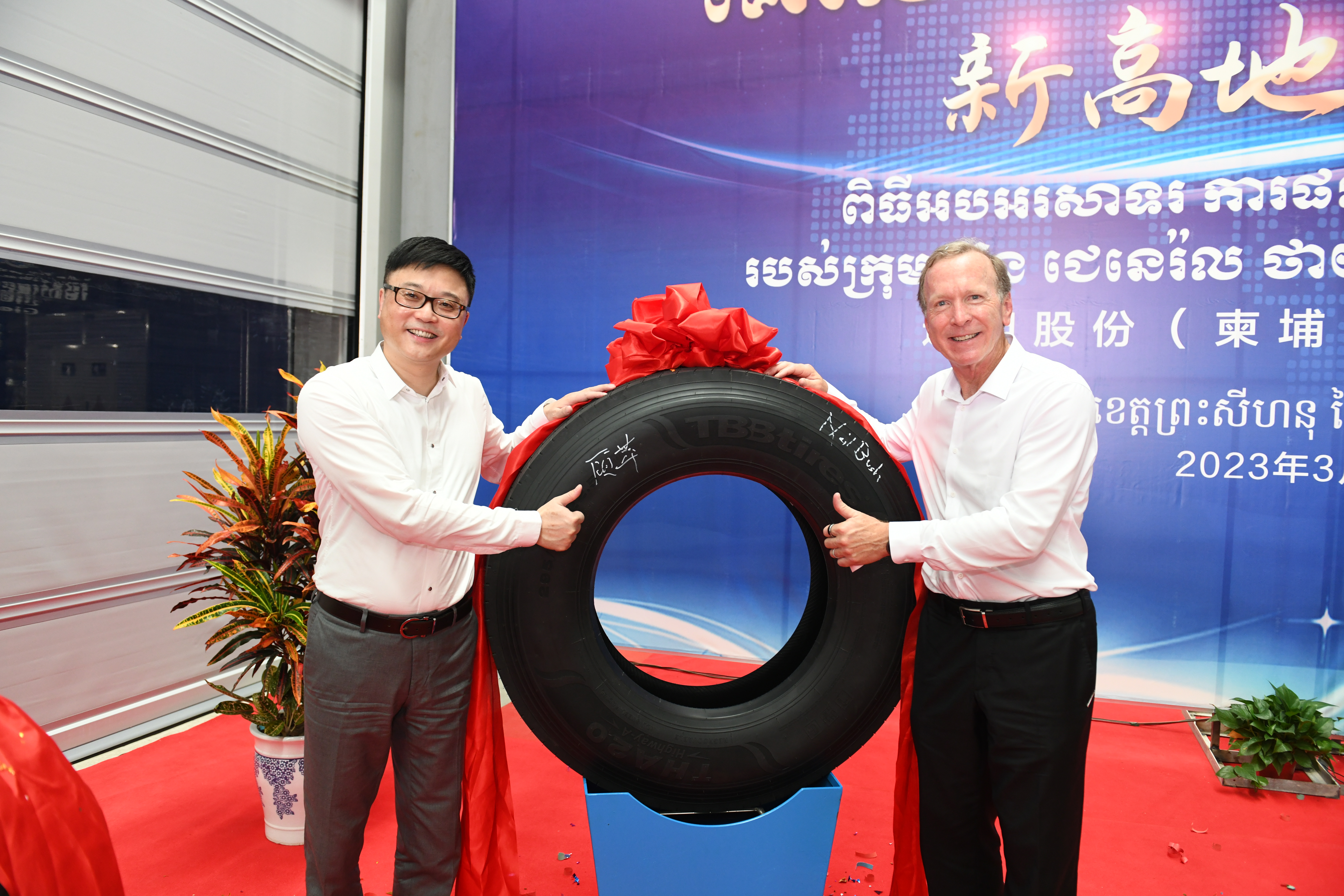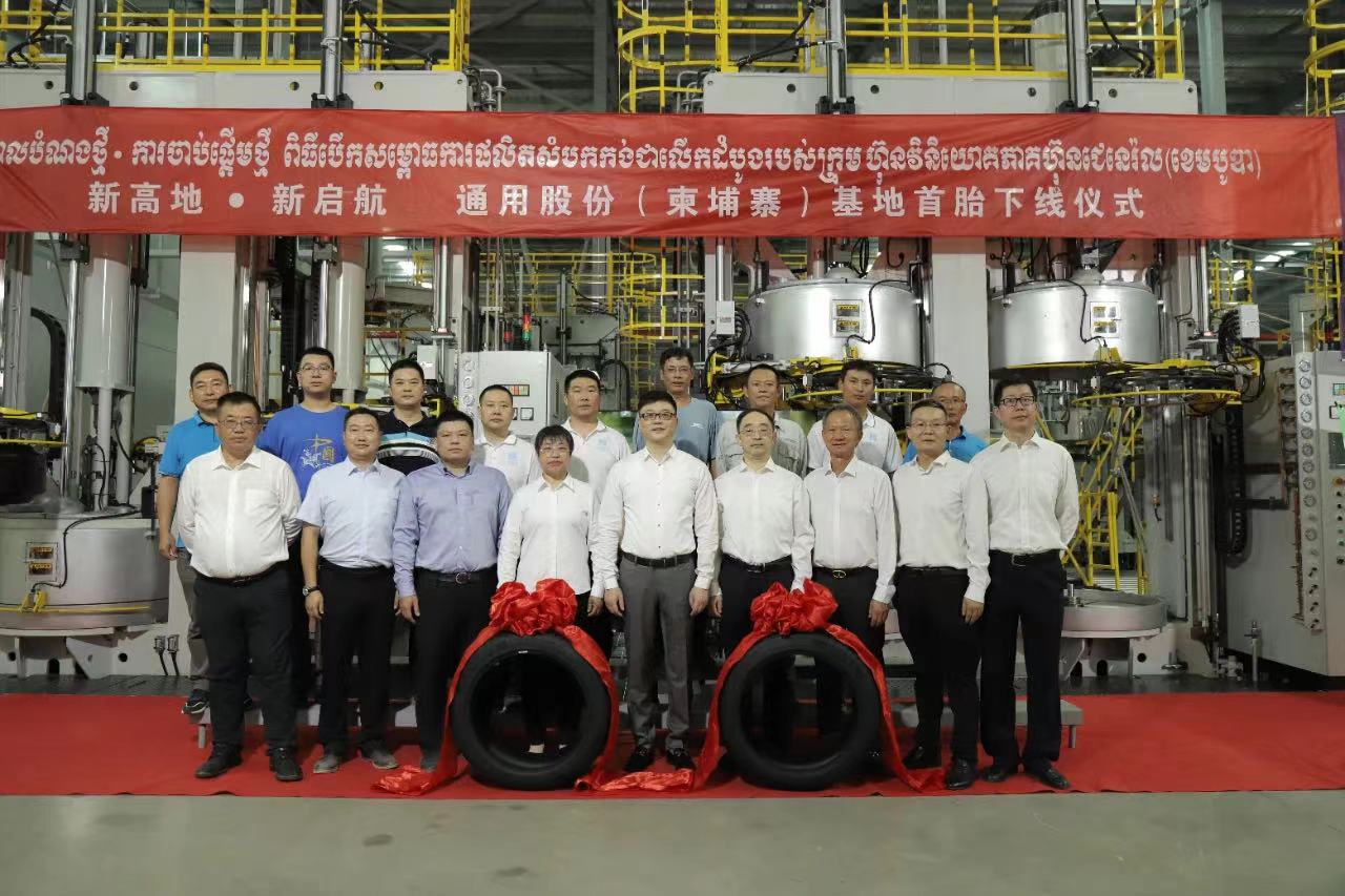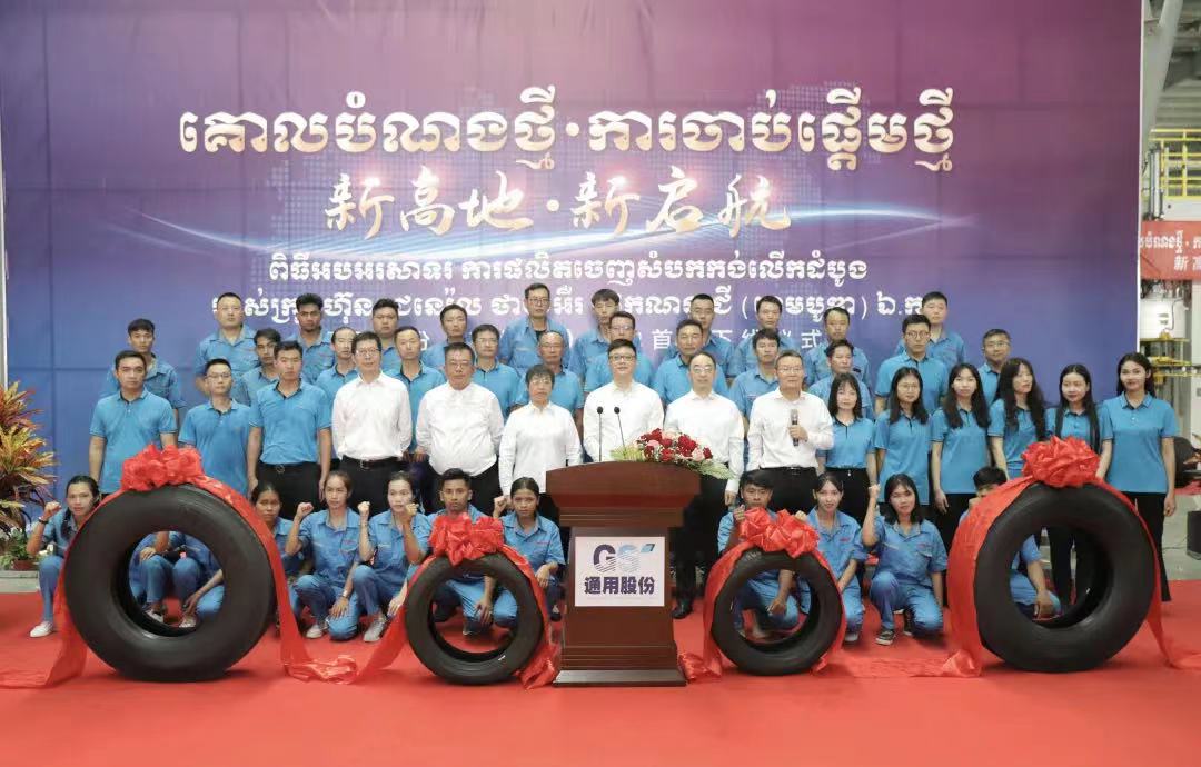 “5、4、3、2、1,出锅!.......”3月18日,在通用轮胎科技柬埔寨公司总经理陶国忠的倒数声中,柬埔寨工厂首胎成功下线,标志着通用股份海外“双基地”的正式建成、全面启航。在首胎下线仪式上,西哈努克省省长郭宗仁、乔治·布什美中关系基金会创始人兼主席尼尔·布什,中国民营经济国际合作商会会长、红豆集团董事局主席周海江,通用股份董事长顾萃等相关领导和全体员工共同见证了这一历史时刻。