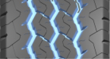 三条宽阔的曲折排水沟槽,有效防止轮胎侧向打滑;S型花纹设计,提高轮胎制动刹车性能。